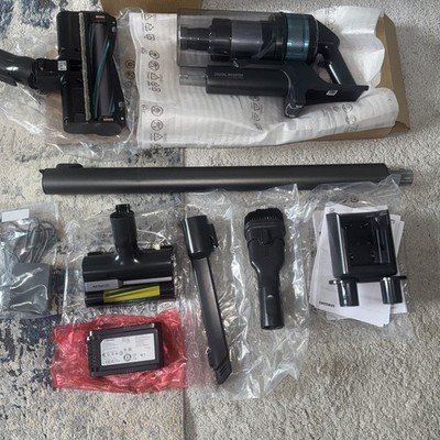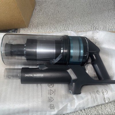 Excellent condition. Slight scratches Check pictures for item. The Samsung Jet 75E Pet Max 200W VS20B75AGR1/EU Cordless stick vacuum cleaner is a sleek and powerful appliance suitable for pet owners. With a lithium-ion battery type and a capacity of 0.8 litres, this vacuum cleaner offers a quick charge time of 3.5 hours. The teal mint colour adds a stylish touch to your home decor. The compact dimensions of 1130 x 250 x 215 mm make it easy to maneuver around furniture and stairs for thorough cleaning. With a power of 21.6 V, this Samsung vacuum cleaner provides efficient and efficient cleaning performance.
